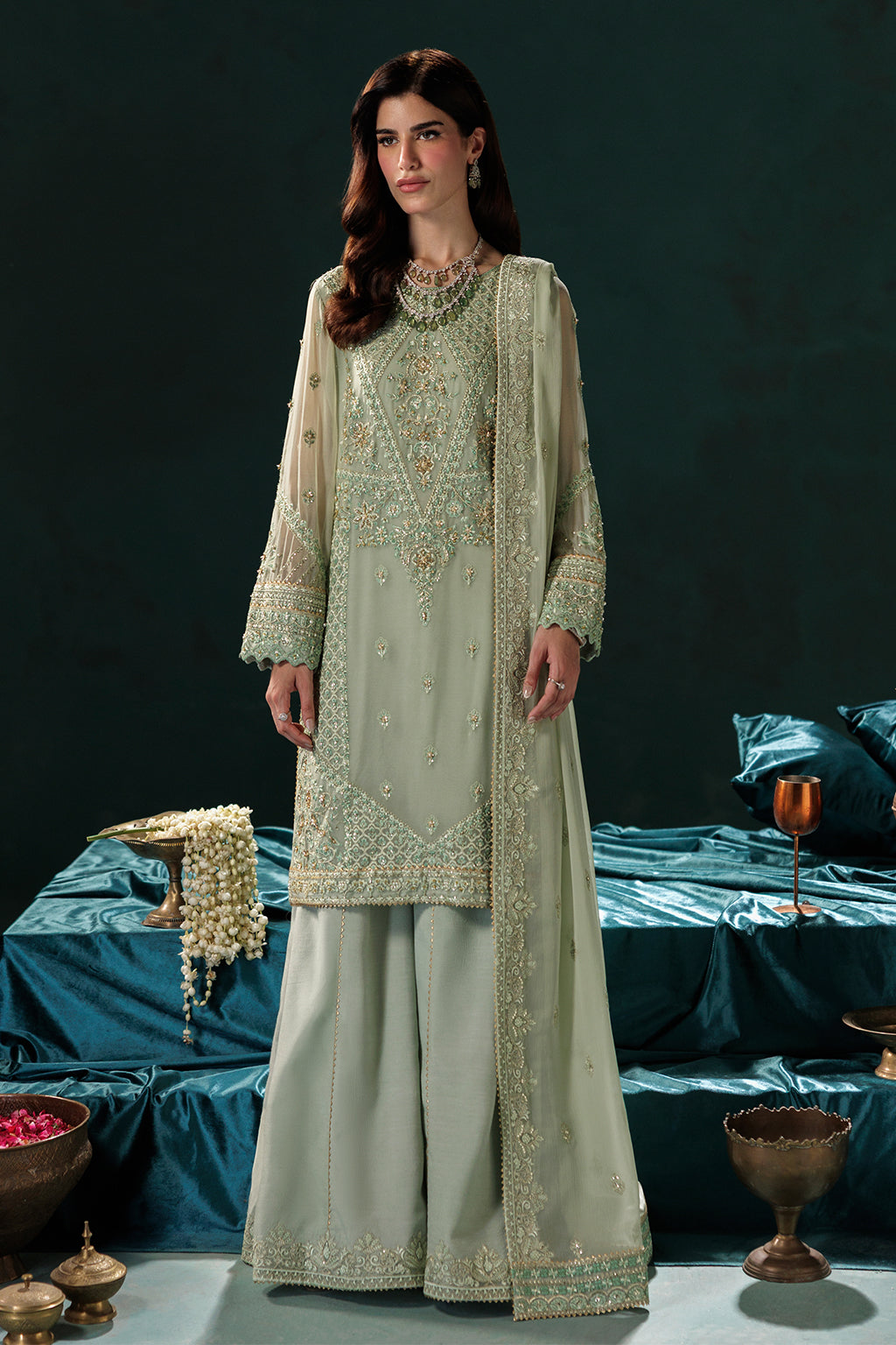 - Embroidered duppata pallu on organza