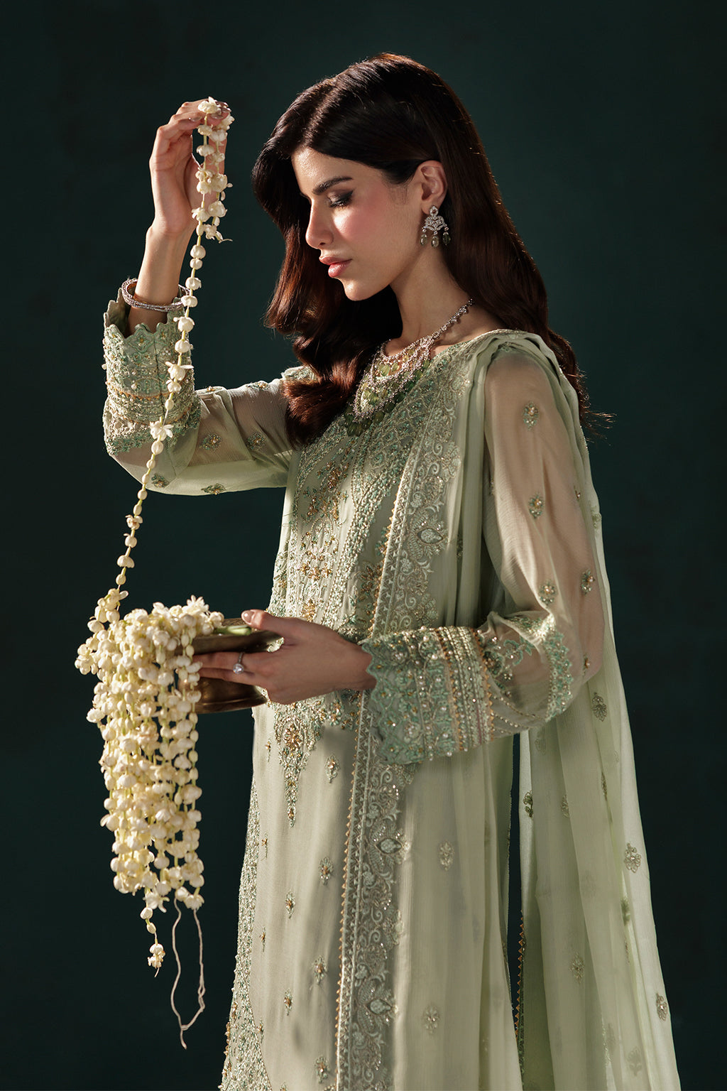 - Embroidered hand embellished slveeve on chiffon