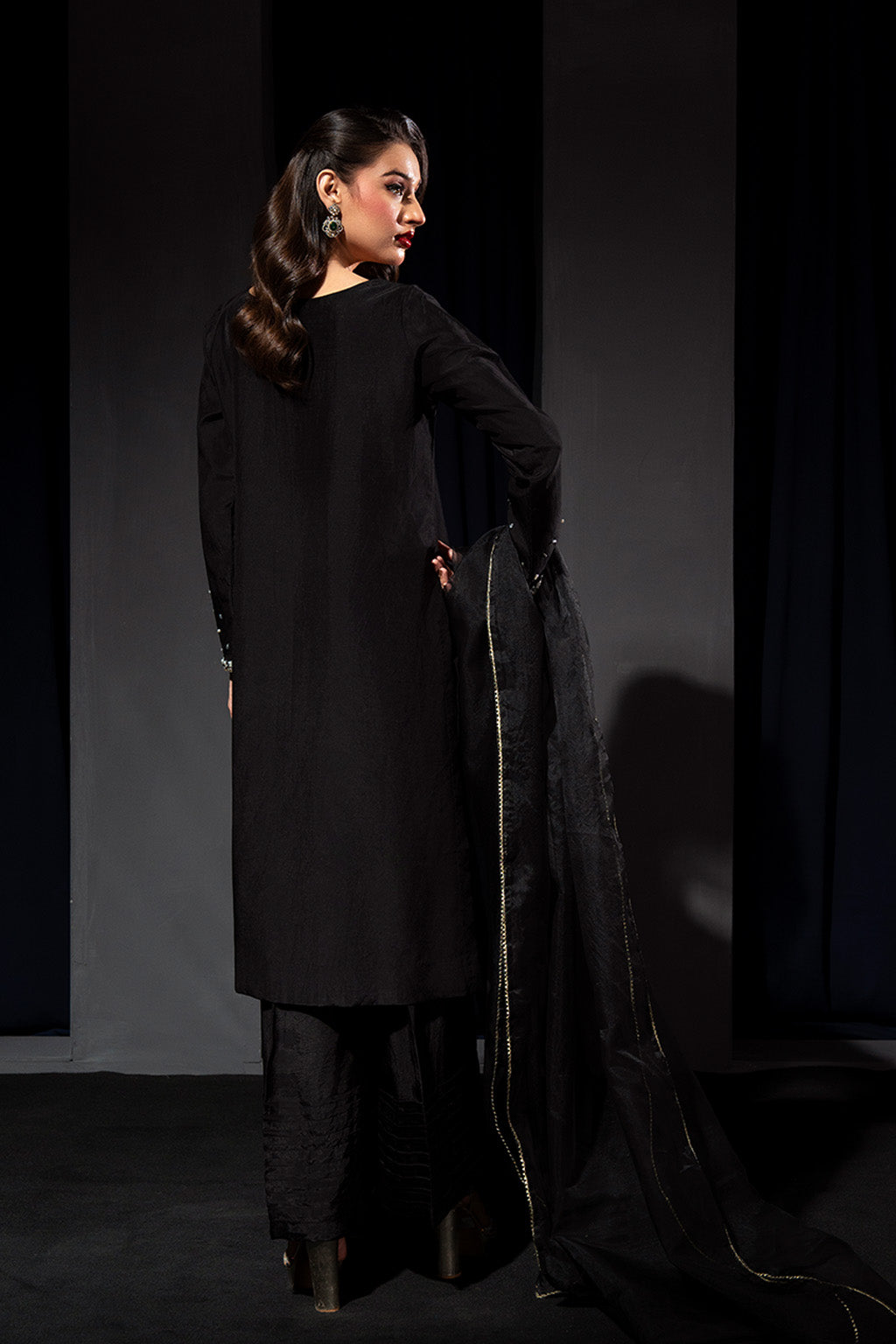 Design details: Hand embellishment on sleeves and neckline.